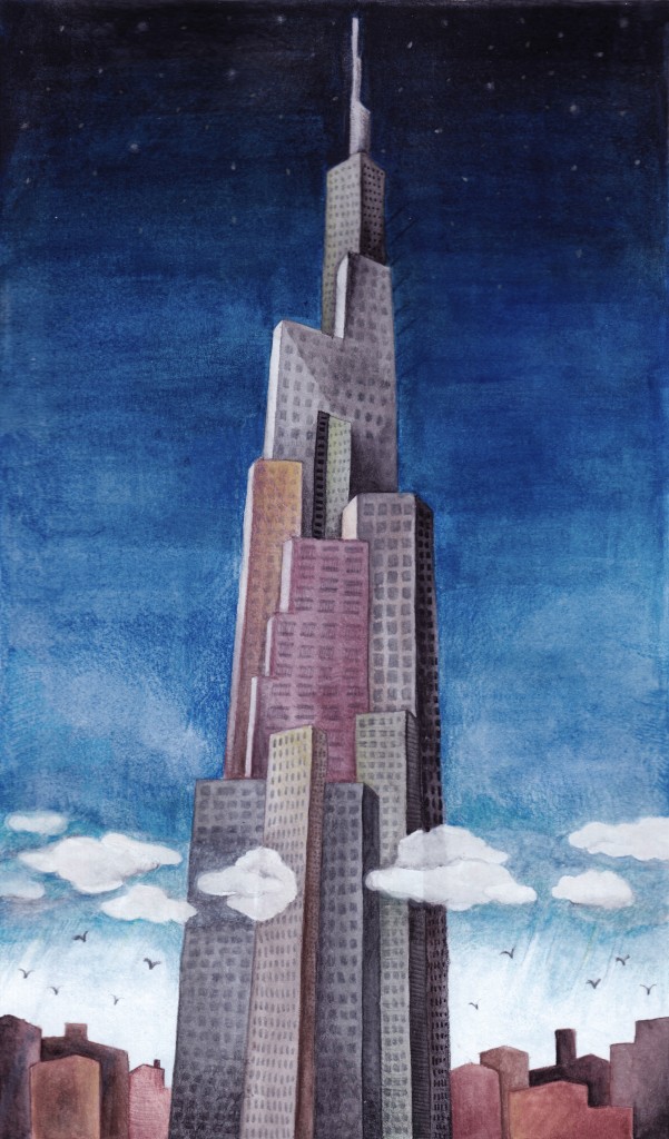 Tallest buildings in the world. Aquarelle on paper. Illustration for "Politikin Zabavnik" magazin,